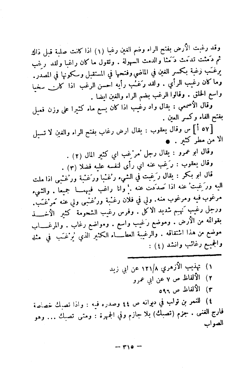 وقد رغبت الأرض بفتح الراء وضم الغين رغبا إذا كانت صلبة قبل ذاك ثم دَمثت تدمَث دَمَثا والدمث السهولة. وتقول ما كان راغبا ولقد رغِب يرغَب رغبة بكسر الغين في الماضي وفتحها في المستقبل وسكونها في المصدر. وما كان رغيب الرأي. ولقد رَغُب رأيه أحسن الرغب إذا كان سخيا واسع الخلق. وقالوا الرغب بضم الراء والغين أيضا.