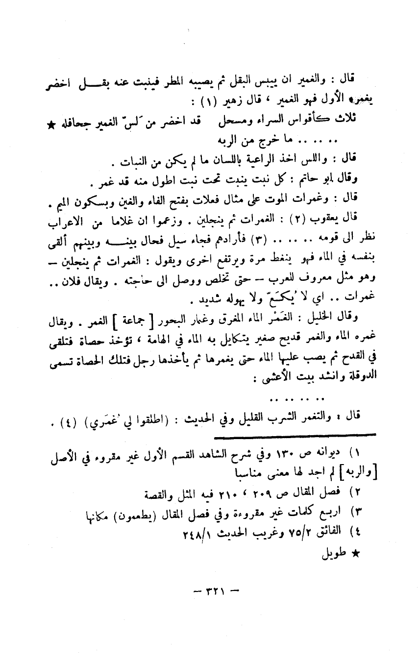 وقال أبو حاتم: كل نبت ينبت تحت نبت أطول منه قد غمر.