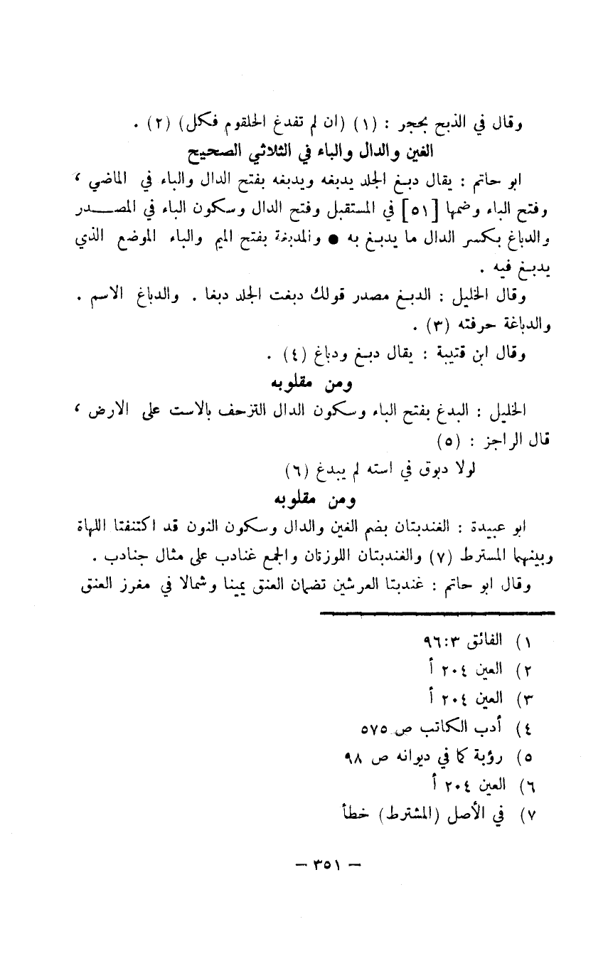 أبو حاتم: يقال دبغ الجلد يدبغه ويدبغه بفتح الدال والباء في الماضي، وفتح الباء وضمها في المستقبل وفتح الدال وسكون الباء في المصدر والدباغ بكسر الدال ما يدبغ به والمدبغة بفتح الميم والباء الموضع الذي يدبغ فيه.
