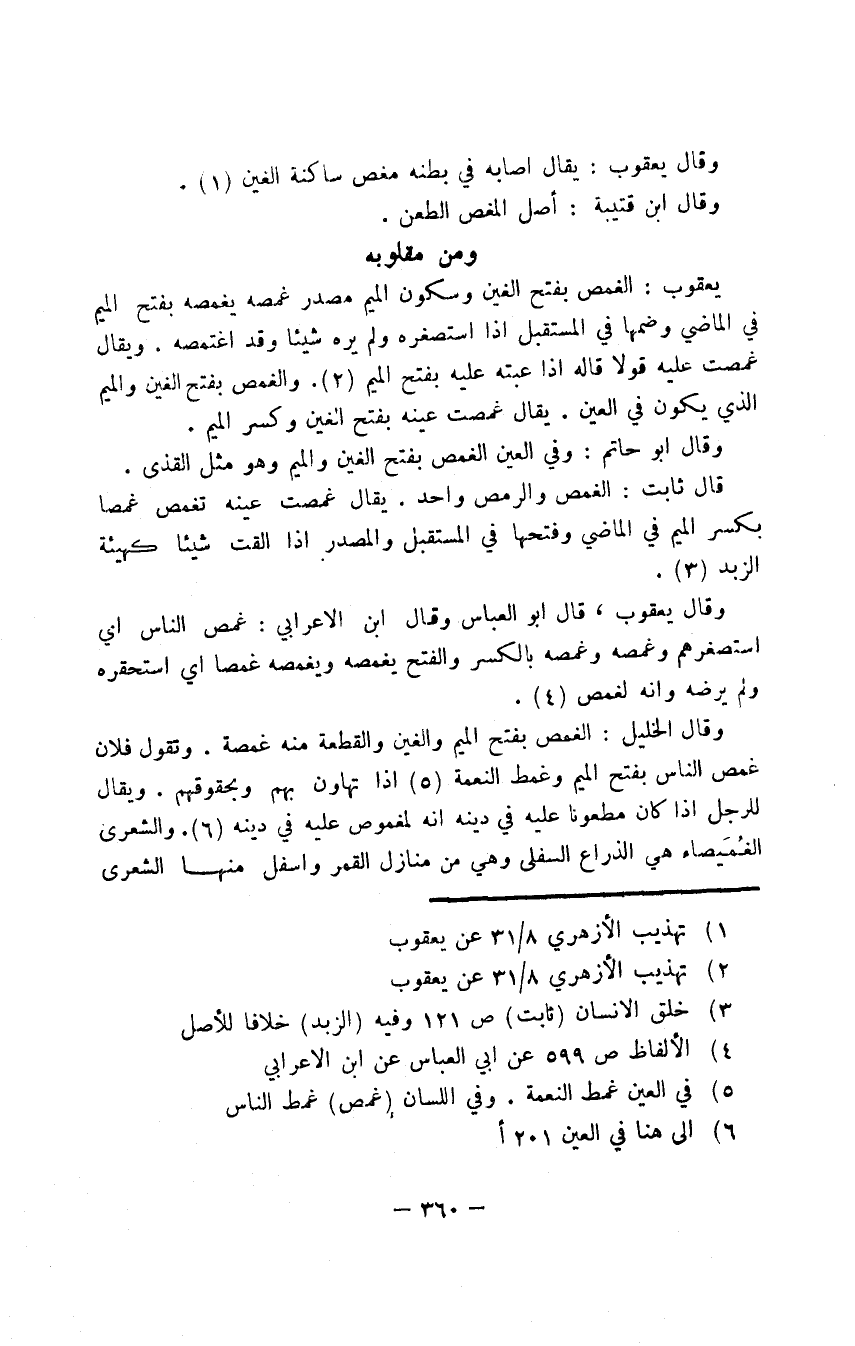 يعقوب: الغمص بفتح الغين وسكون الميم مصدر غمصه يغمصه بفتح الميم في الماضي وضمها في المستقبل إذا استصغره ولم يره شيئا وقد اغتمصه. ويقال غمصت عليه قولا قاله إذا عبته عليه بفتح الميم. والغمض بفتح الغين والميم الذي يكون في العين. يقال غمضت عينه بفتح الغين وكسر الميم.