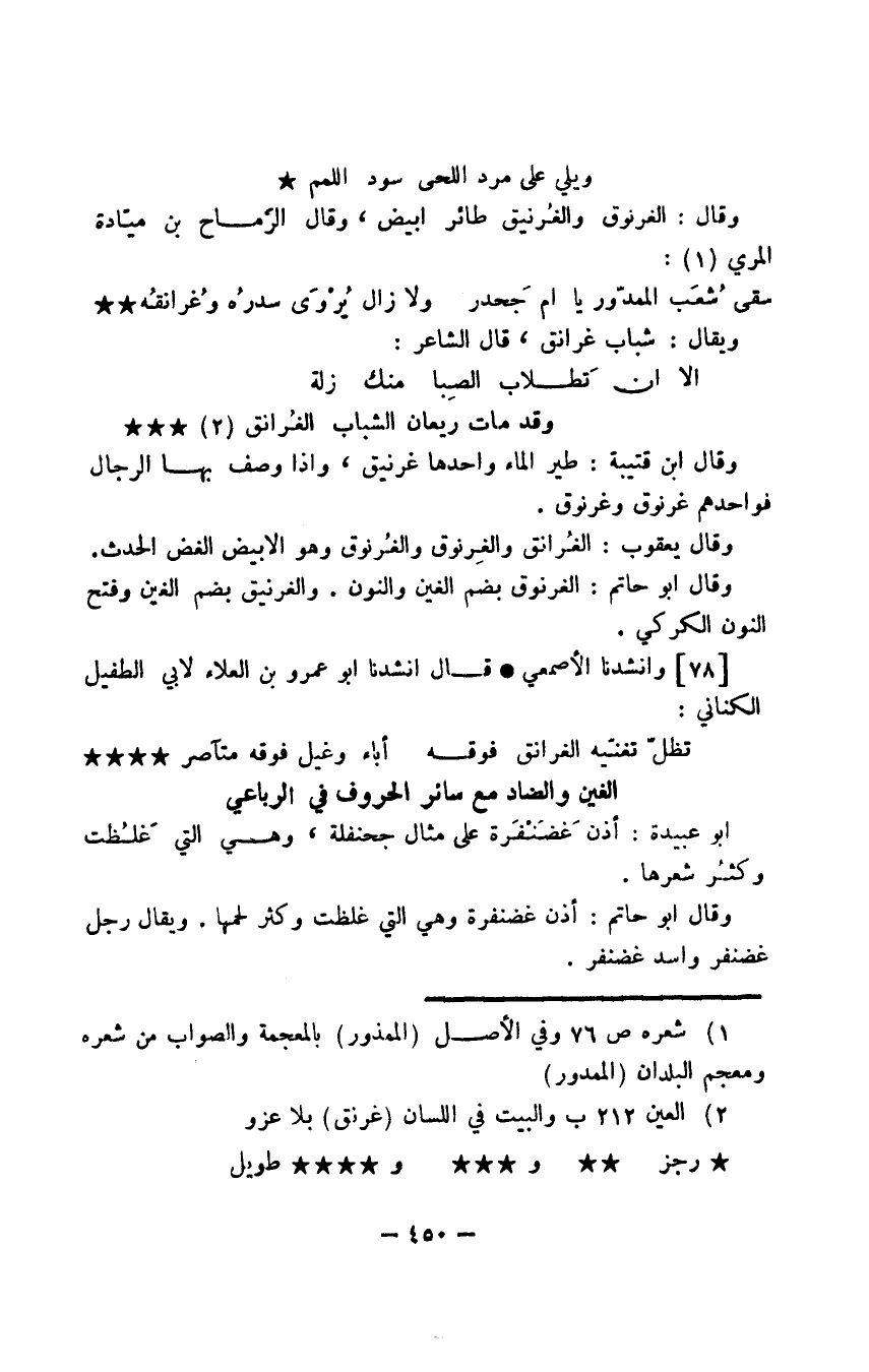 وقال: الغرنوق والغُرنيق طائر أبيض، وقال الرّماح بين ميّادة المري: