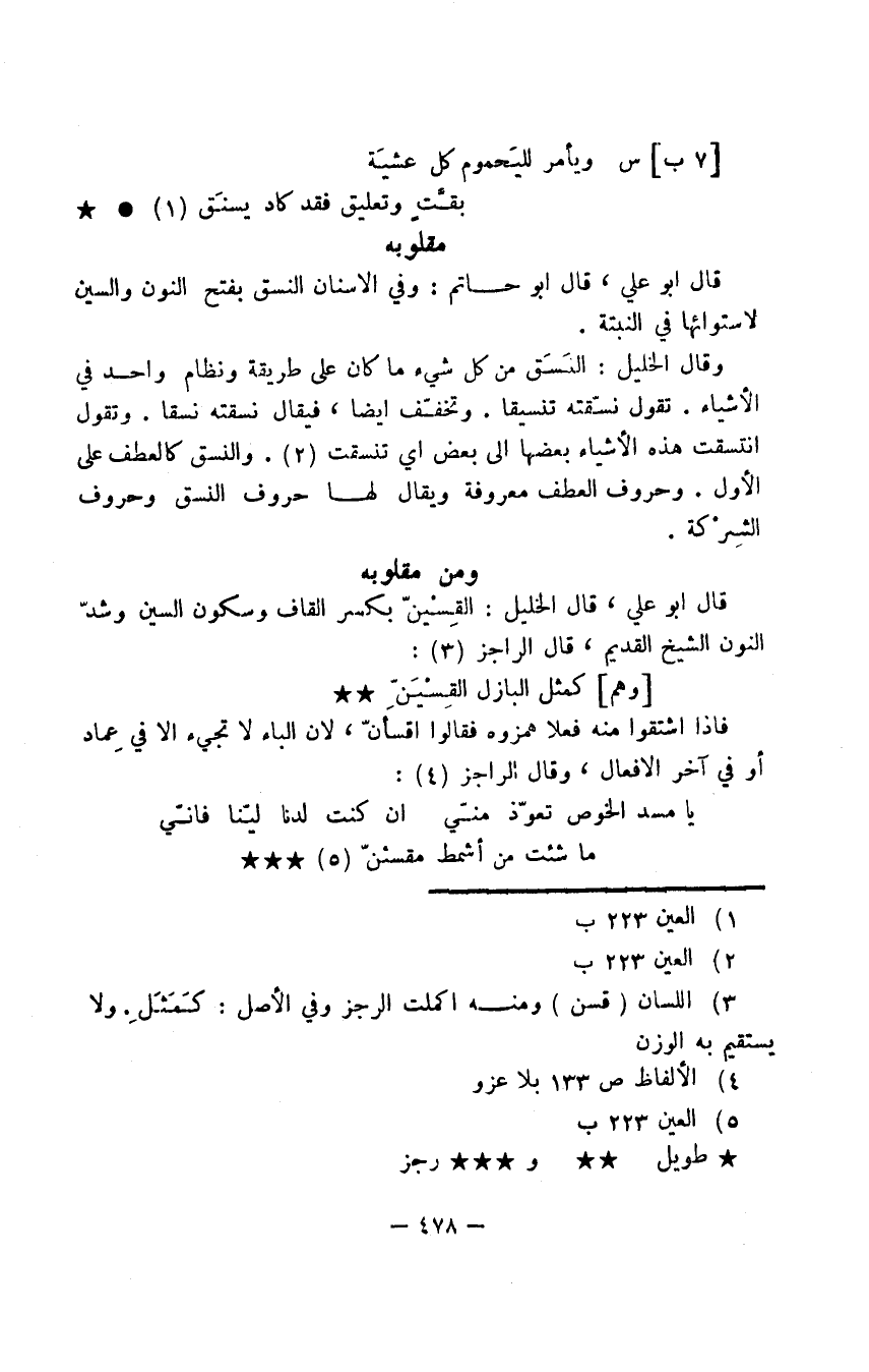 قال أبو علي، قال أبو حاتم: وفي الأسنان النسق بفتح النون والسين لاستوائها في النبتة.