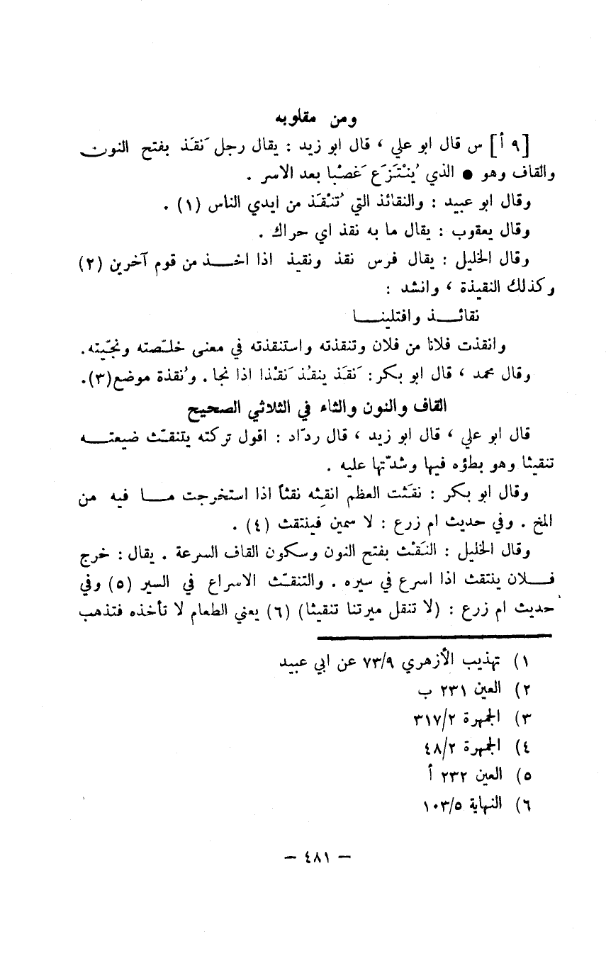 القاف والنون والثاء في الثلاثي الصحيح