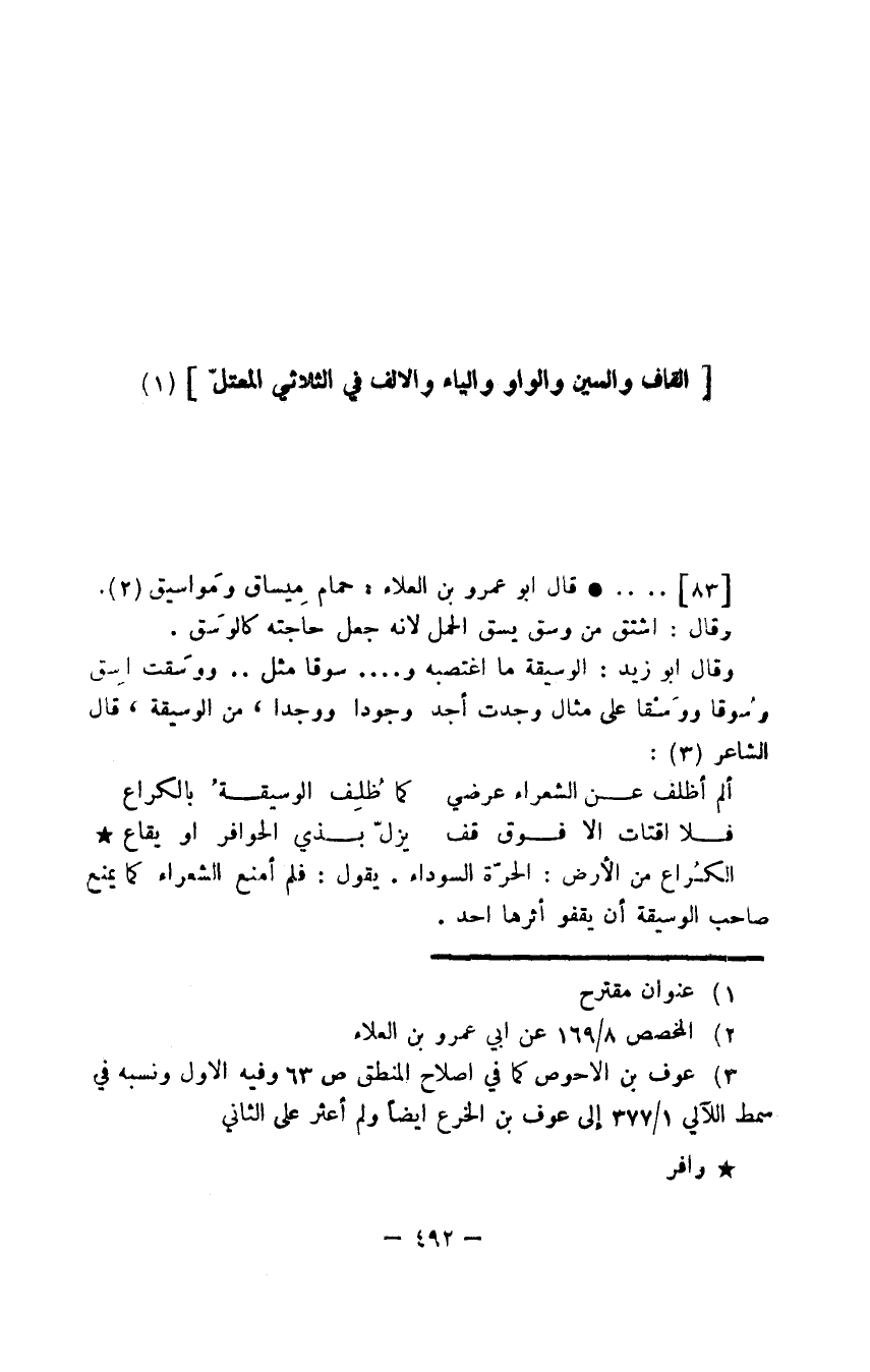 وقال أبو زيد: الوسيقة ما اغتصبه و .... سوقا مثل .. ووسقت أسِق وُسوقا ووَسْقا على مثال وجدت أجد وجودا ووجدا، من الوسيقة، قال الشاعر:
