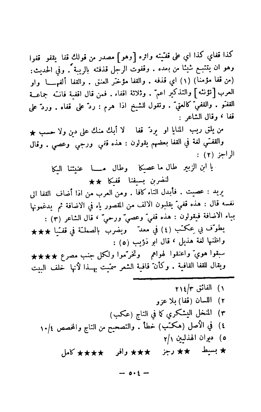 يريد: عصيت. فأبدل التاء كافا. ومن العرب من إذا أضاف القفا إلى نفسه قال: هذه قفيّ يقلبون الألف المقصور ياء في الإضافة ثم يدغمونها بياء الإضافة فيقولون: هذه قفيّ وعصيّ ورحيّ، قال الشاعر: