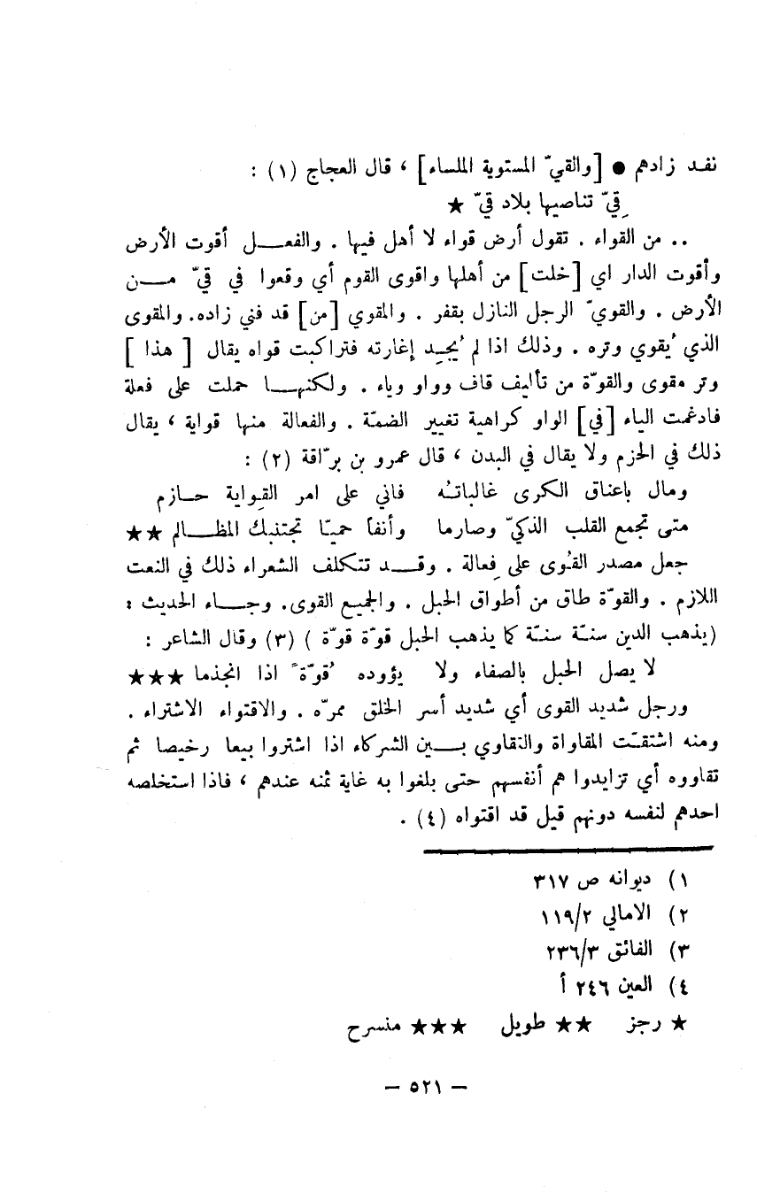 نفد زادهم [والقيّ المستوية الملساء]، قال العجاج: