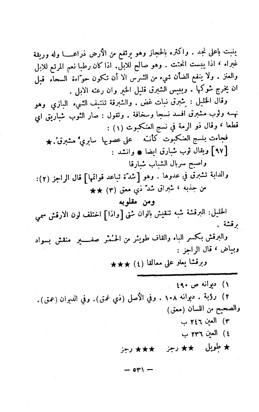 الخليل: البرقشة شبه تنقيش بألوان شتى وإذا اختلف لون الأرقش سمي برقشة.