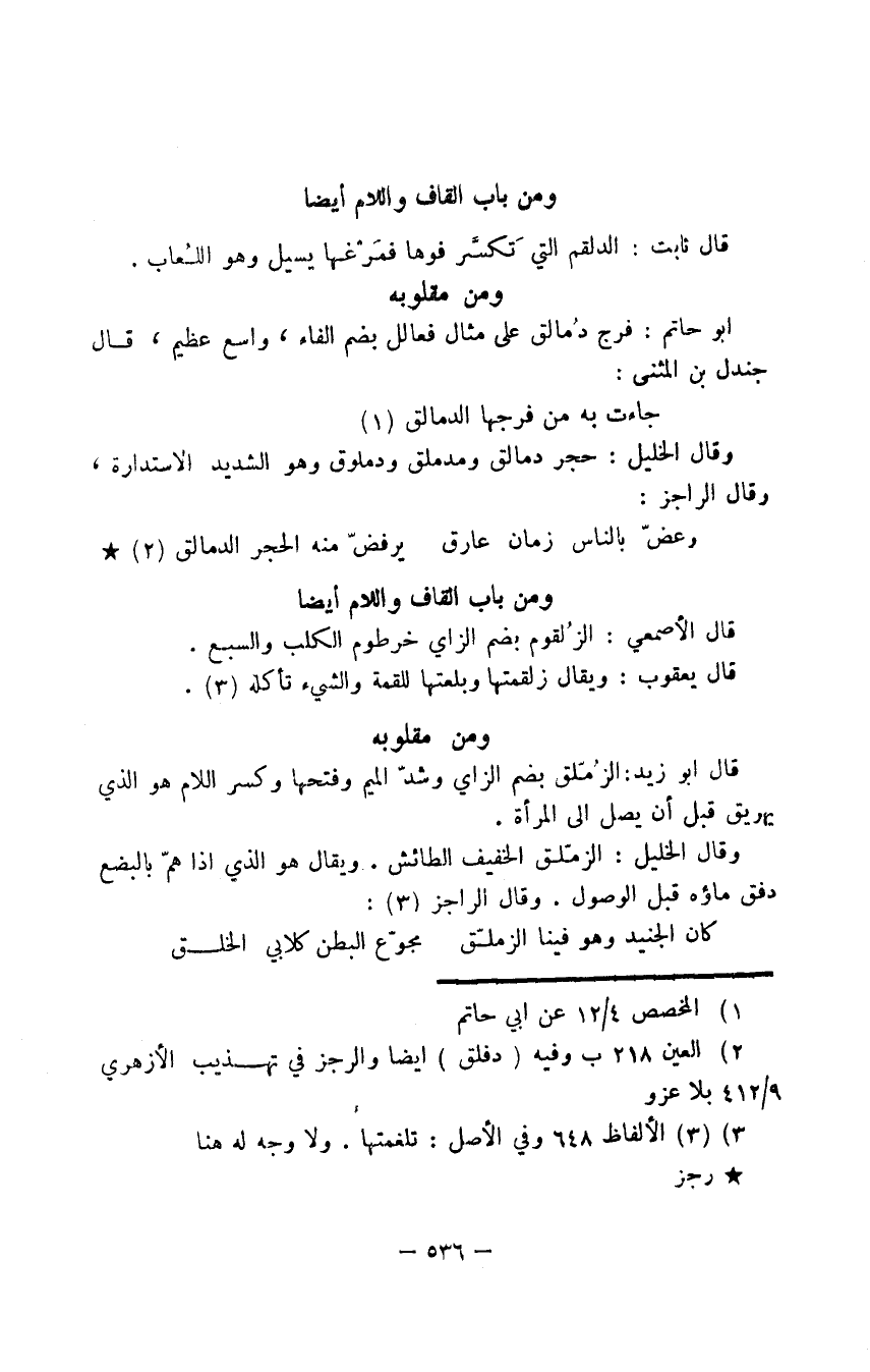 ومن باب القاف واللام أيضا