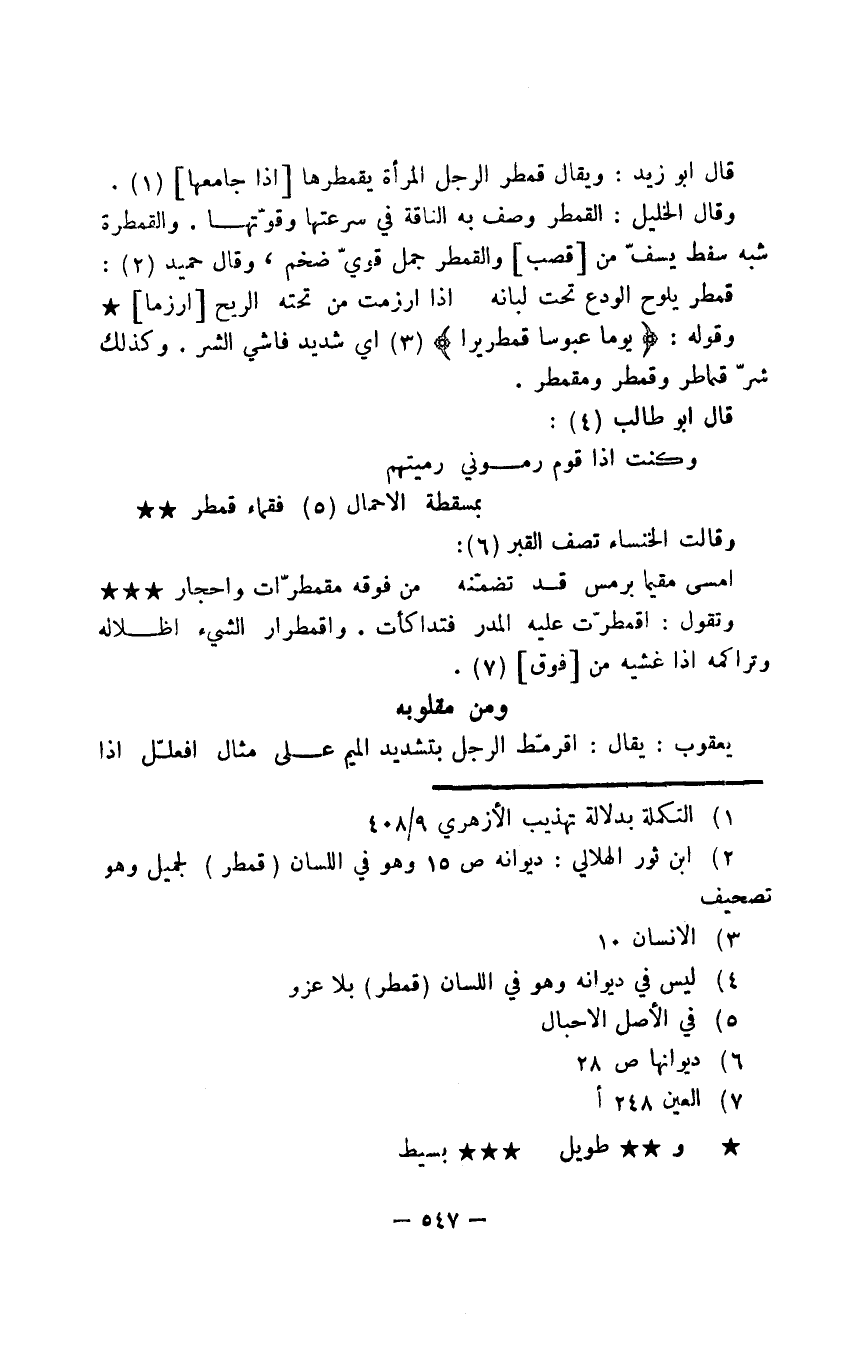 قال أبو زيد: ويقال قمطر الرجل المرأة يقمطرها إذا جامعها.