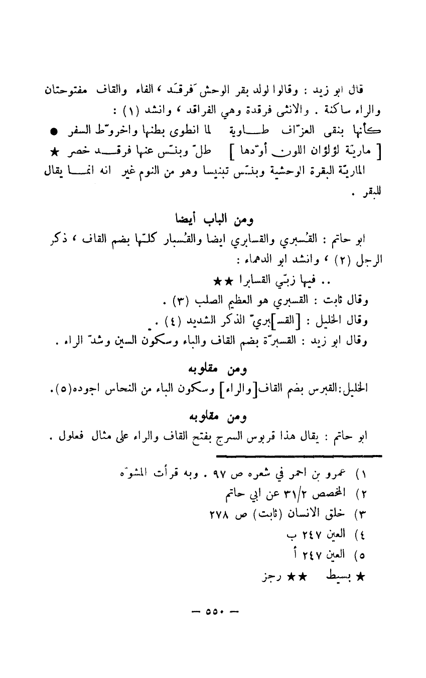 وقال أبو زيد: القسبرّة بضم القاف والباء وسكون السين وشدّ الراء.