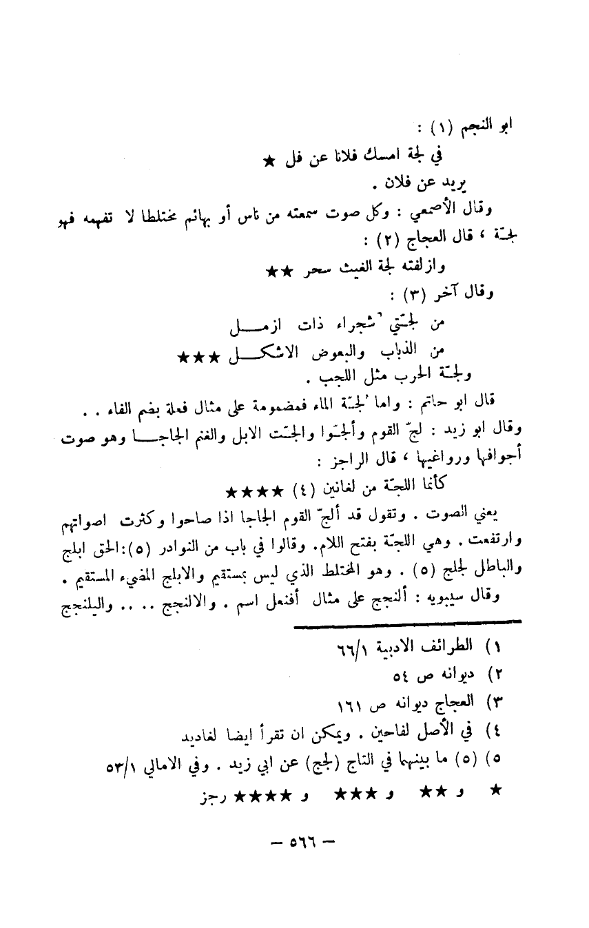 قال أبو حاتم: وأما لُجّة الماء فمضمومة على مثال فعلة بضم الفاء .. وقال أبو زيد: لجّ القوم وألجّوا وألجّت الإبل والغنم إلجاجا وهو صوت أجوافها ورواغيها، قال الراجز: