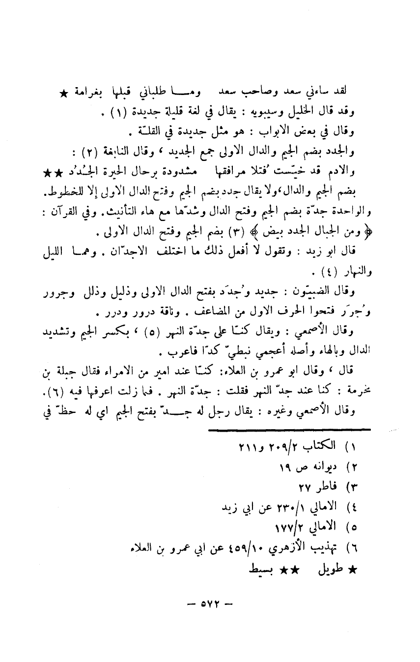 قال، وقال أبو عمرو بن العلاء: كنا عند أمير من الأمراء فقال جبلة بن مخرمة: كنا عند جدّ النهر فقلت: جدّة النهر. فما زلت أعرفها فيه.