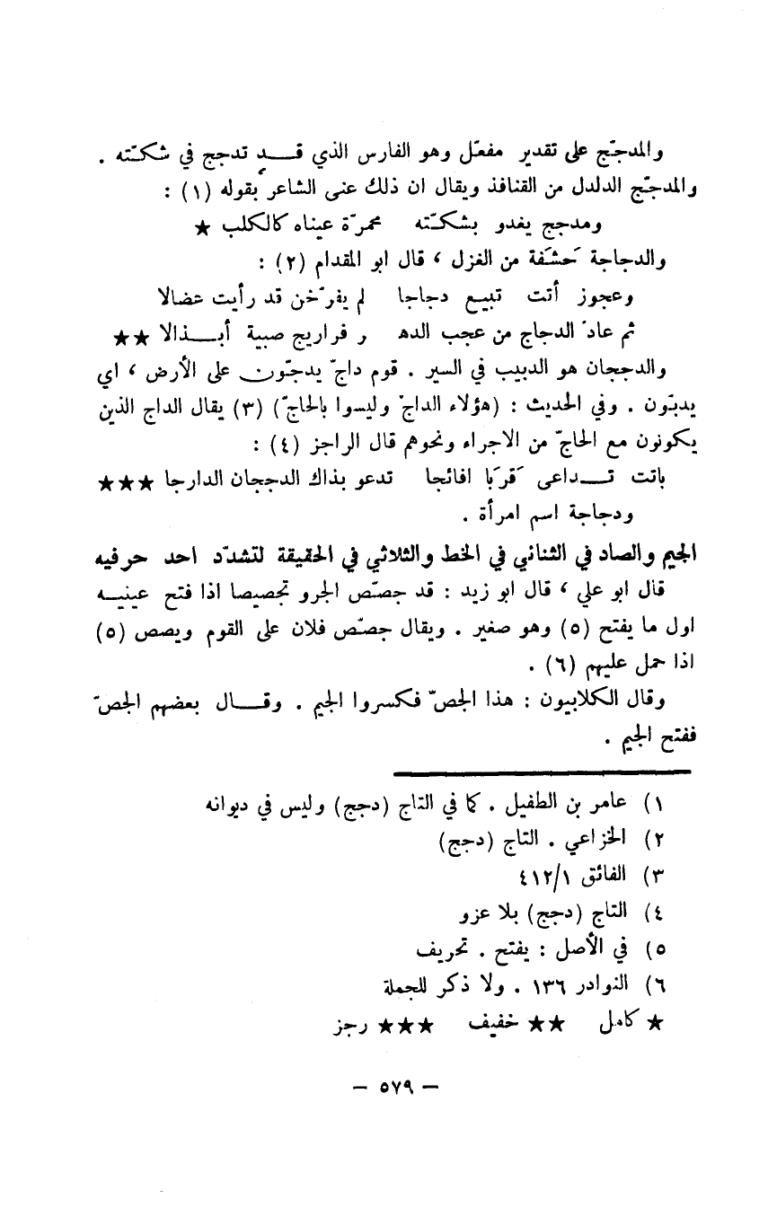 والمدجّج على تقدير مفعّل وهو الفارس الذي قد تدجج في شكّته. والمدجّج الدلدل من القنافذ ويقال إن ذلك عنى الشاعر بقوله: