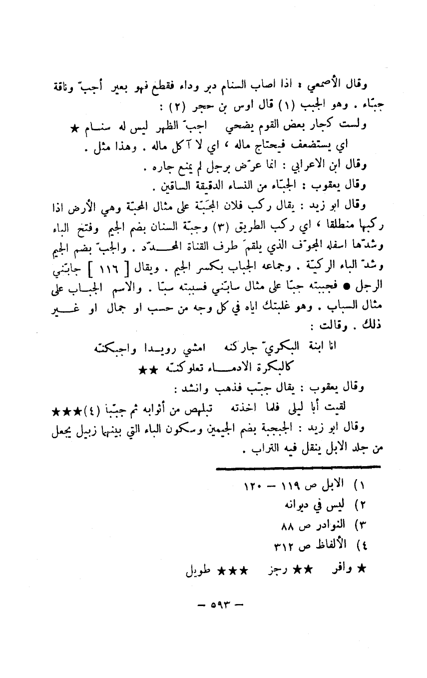 وقال الأصمعي: إذا أصاب السنام دبر وداء فقطع فهو بعير أجبّ وناقة جبّاء. وهو الجبب قال أوس بن حجر: