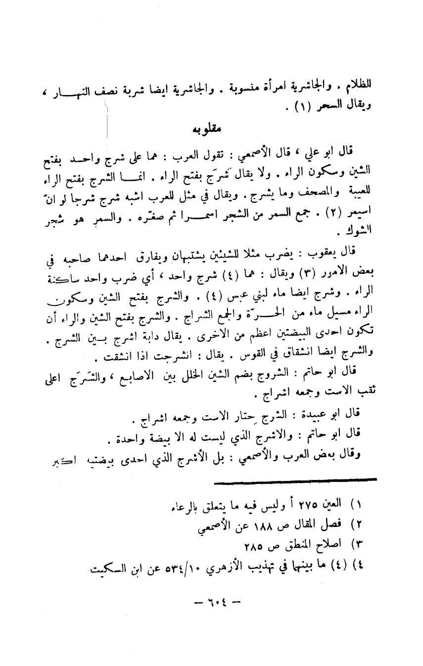 قال أبو علي، قال الأصمعي: تقول العرب: هما على شرج واحد بفتح الشين وسكون الراء. ولا يقال شَرَج بفتح الراء. إنما الشرج بفتح الراء للعيبة والمصحف وما يشرج. ويقال في مثل للعرب أشبه شرج شرجا لو أنّ أسيمر. جمع السمر من الشجر أسمرا ثم صغّره. والسمر هو شجر الشوك.