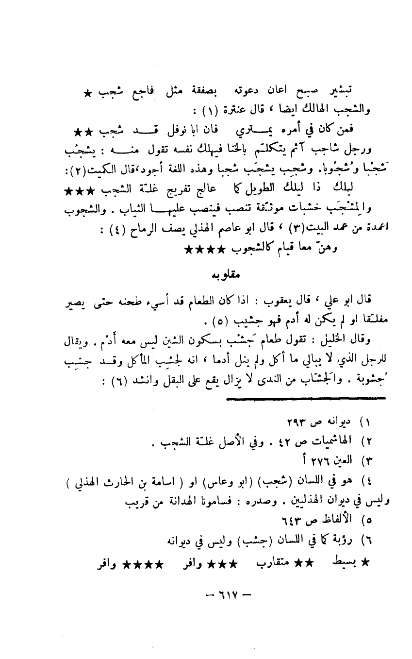 والمِشْجَب خشبات موثّقة تنصب فينصب عليها الثياب. والشجوب أعمدة من عمد البيت، قال أبو عاصم الهذلي يصف الرماح: