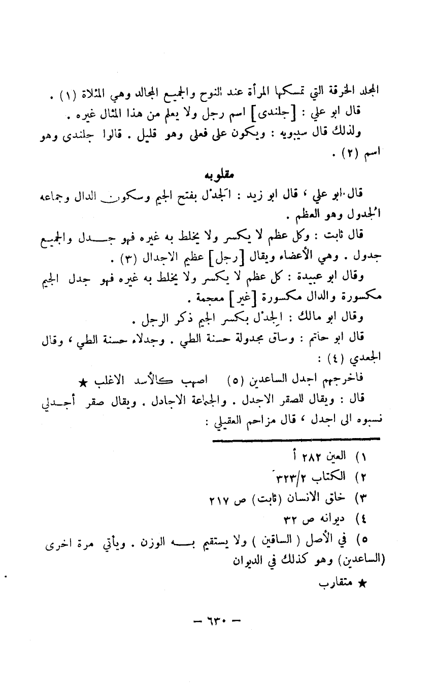 قال أبو علي، قال أبو زيد: الجَدْل بفتح الجيم وسكون الدال وجماعه الجُدول وهو العظم.