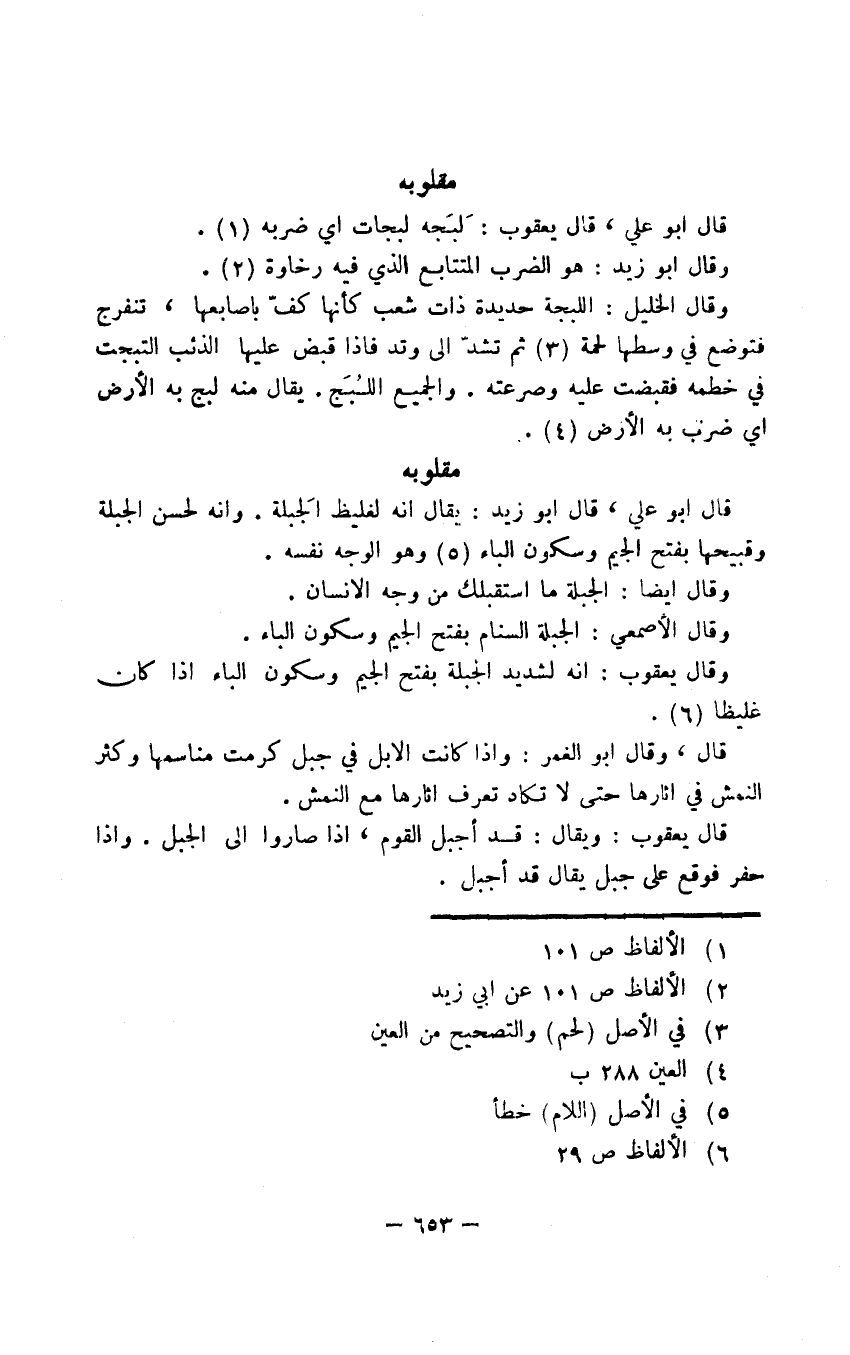 قال يعقوب: ويقال: قد أجبل القوم، إذا صاروا إلى الجبل. وإذا حفر فوقع على جبل يقال قد أجبل.