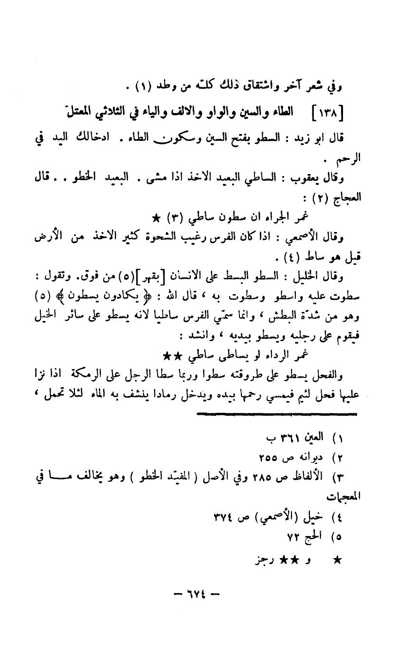 وقال يعقوب: الساطي البعيد الأخد إذا مشى. البعيد الخطو .. قال العجاج:
