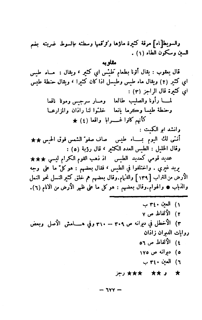 قال يعقوب: يقال أتونا بطعام طَيْس أي كثير، ويقال: ماء طيس أي كثير ويقال ماء طيس وطيسل إذا كان كثيرا، ويقال حنطة طيس أي كثيرة قال الراجز: