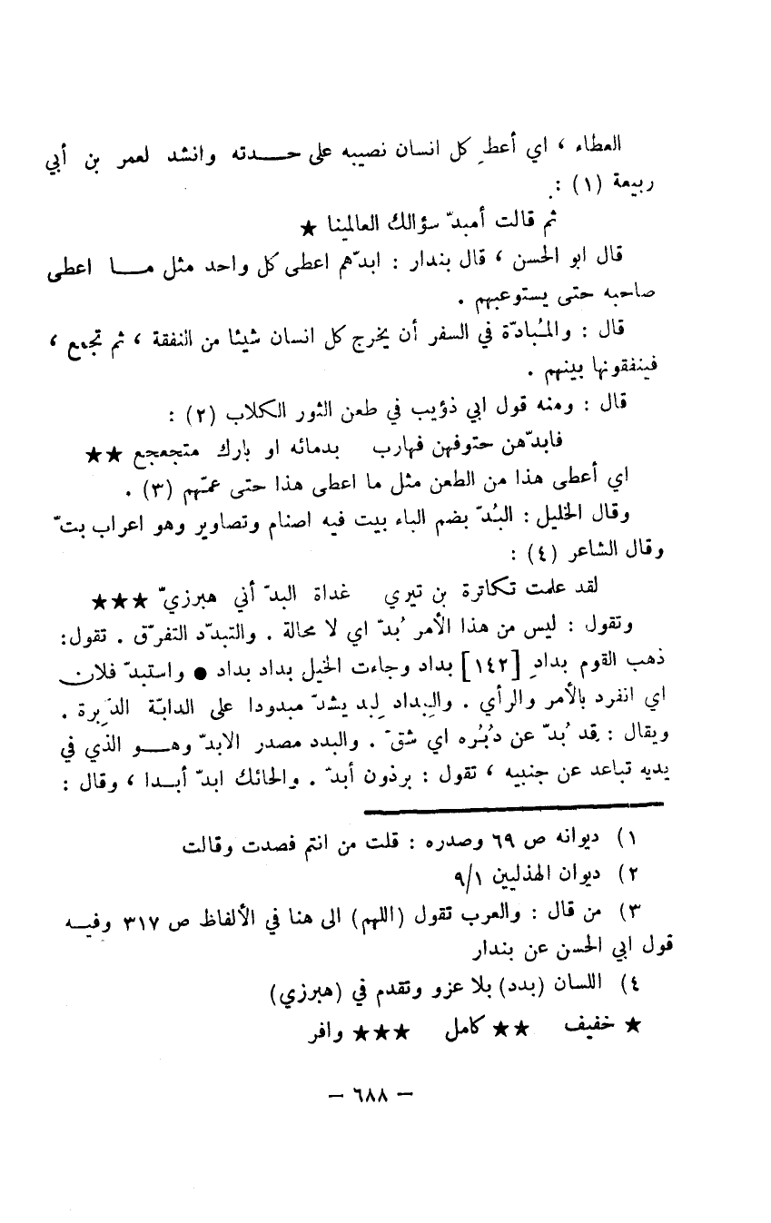 قال أبو الحسن، قال بندار: أبدّهم أعطى كل واحد مثل ما أعطى صاحبه حتى يستوعبهم.