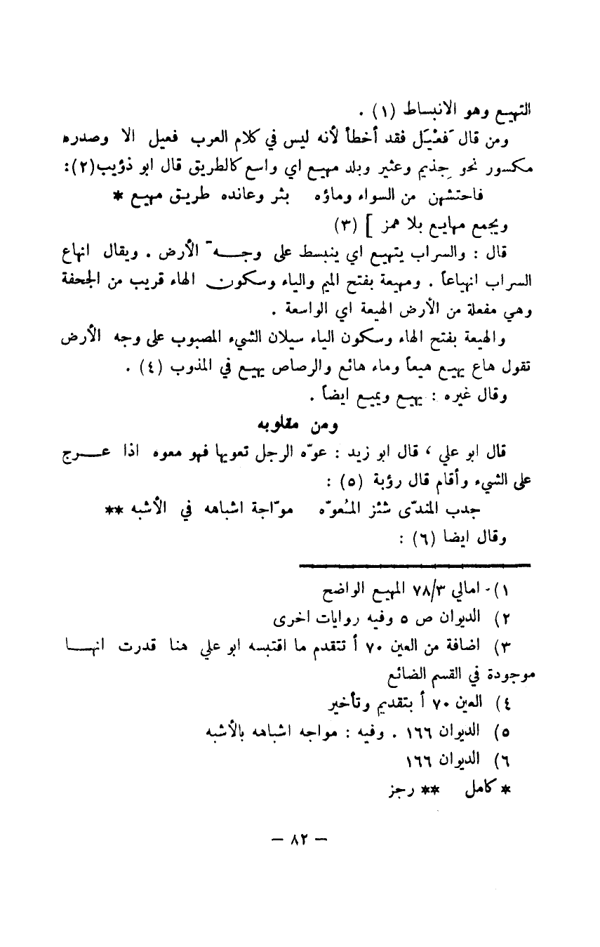 قال: والسراب يتهيع أي ينبسط على وجه الأرض. ويقال انهاع السراب انهياعًا. ومهيعة بفتح الميم والياء وسكون الهاء قريب من الجحفة وهي مفعلة من الأرض الهيعة أي الواسعة.
