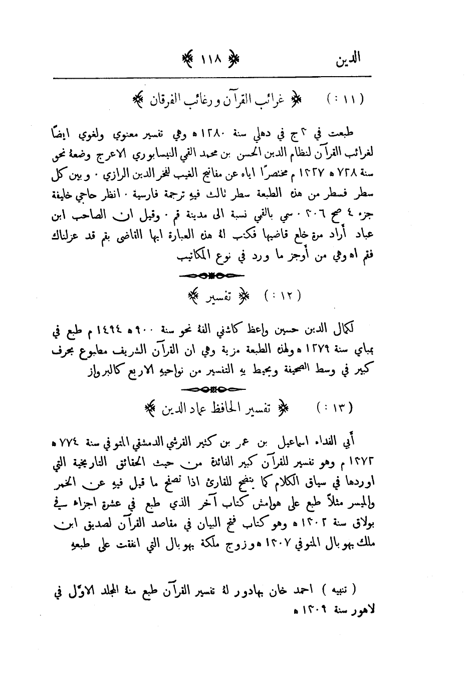 تنبيه - أحمد خان بهادور له تفسير القران طبع منه المجلد الاول في لاهور سنة 1309هـ.