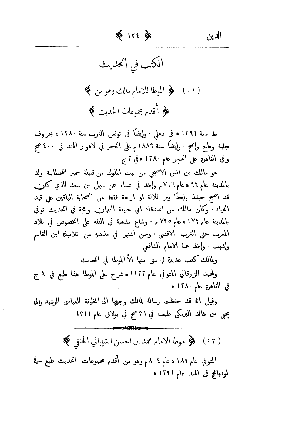 1ا - لموطا للاما م مالك وهو من اقدم مجموعات الحديث