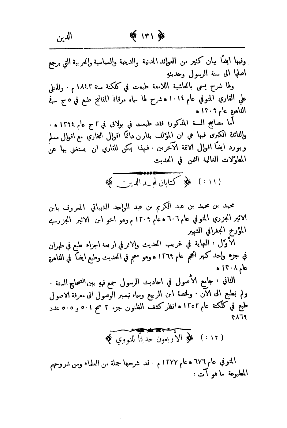 الاول: النهاية في غريب الحديث والاثر في اربعة اجزاء طبع في طهران في جزء واحد كبير الحجم عام 1269هـ وهو معجم في الحديث وطبع ايضاً في القاهرة عام 1308هـ.