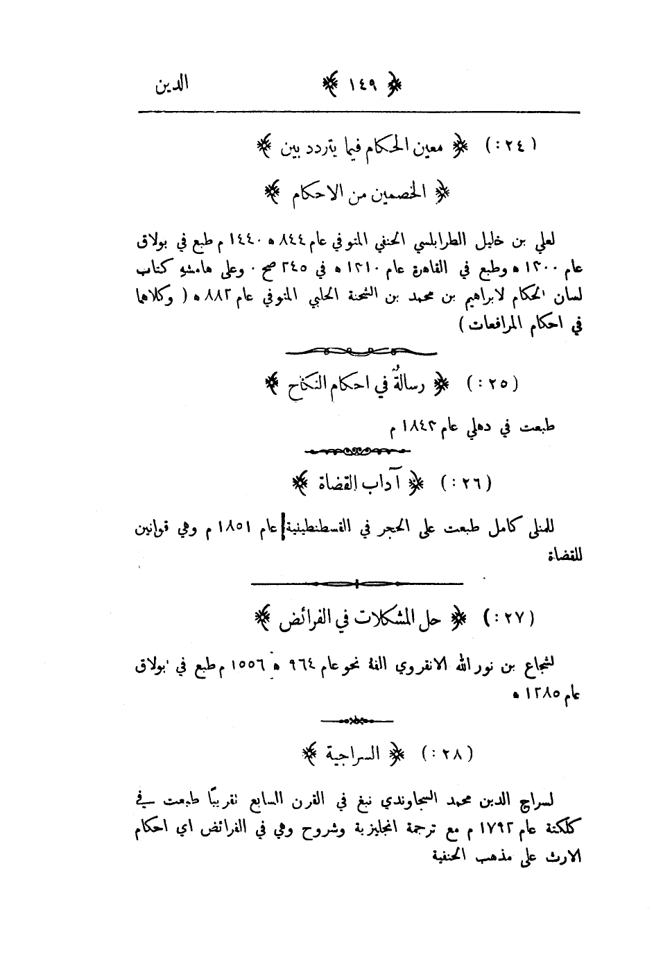 للمنلى كامل طبعت على الحجر في القسطنطينية عام 1851م وهي قوانين للقضاة