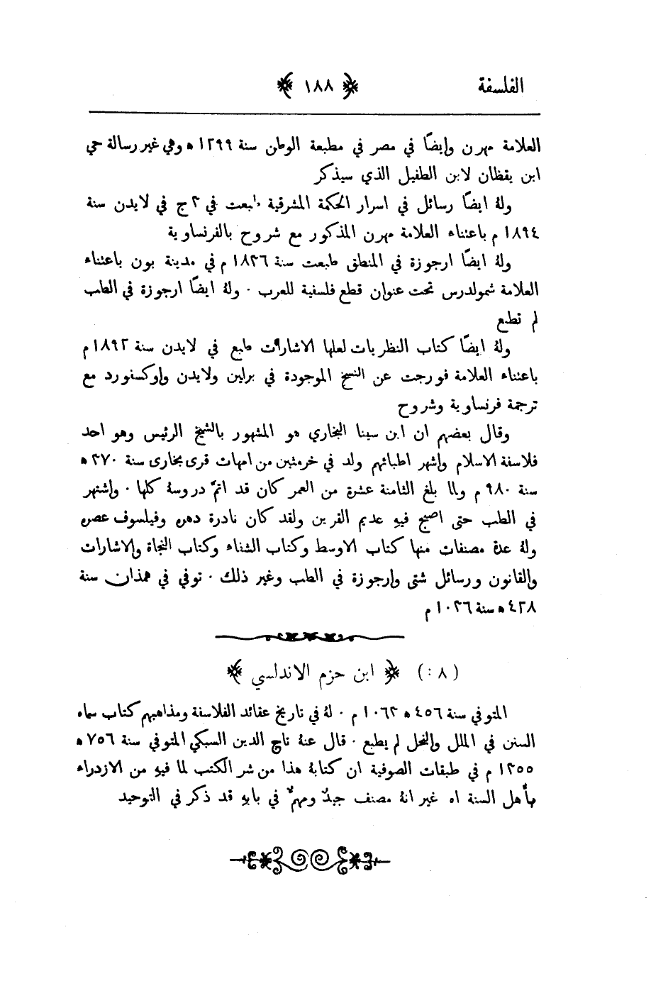 التوفي سنة 456هـ 1063م. له في تاريخ عقائد الفلاسفة ومذاهبهم كتاب سماه السنن في الملل والنحل لم يطبع. قال عنه تاج الدين السبكي التوفي سنة 756هـ 1355م في طبقات الصوفية إن كتابه هذا من شر الكتب لما فيه من الازدراء باهل السنة. غير إنه مصنف جيد ومهم في بابه قد ذكر في التوحيد.