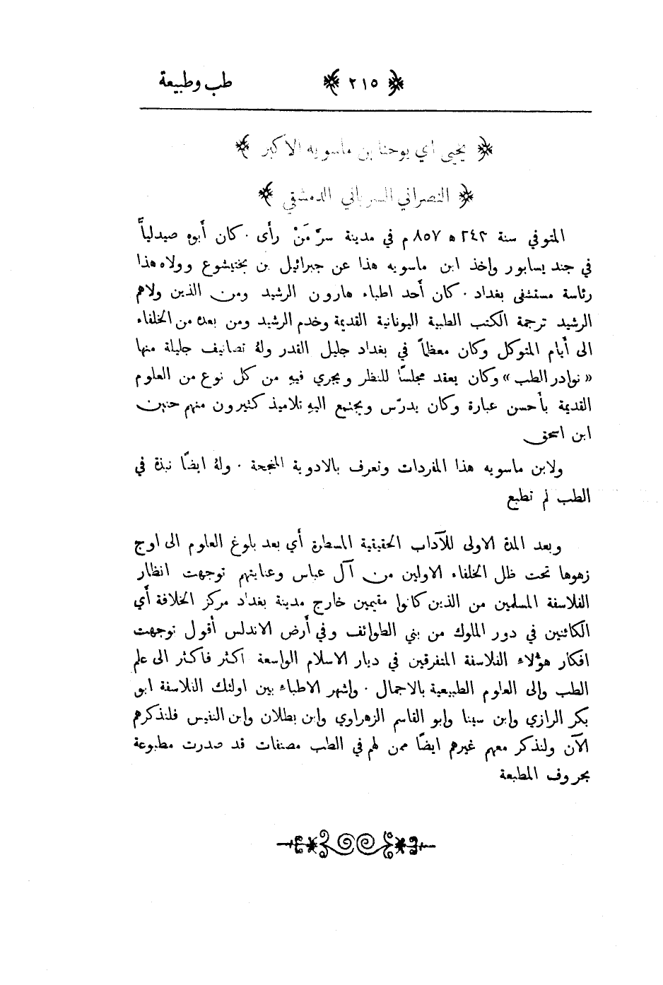 يحيى أي يوحنا بن ماسويه الاكبر النصراني السرياني الدمشقي