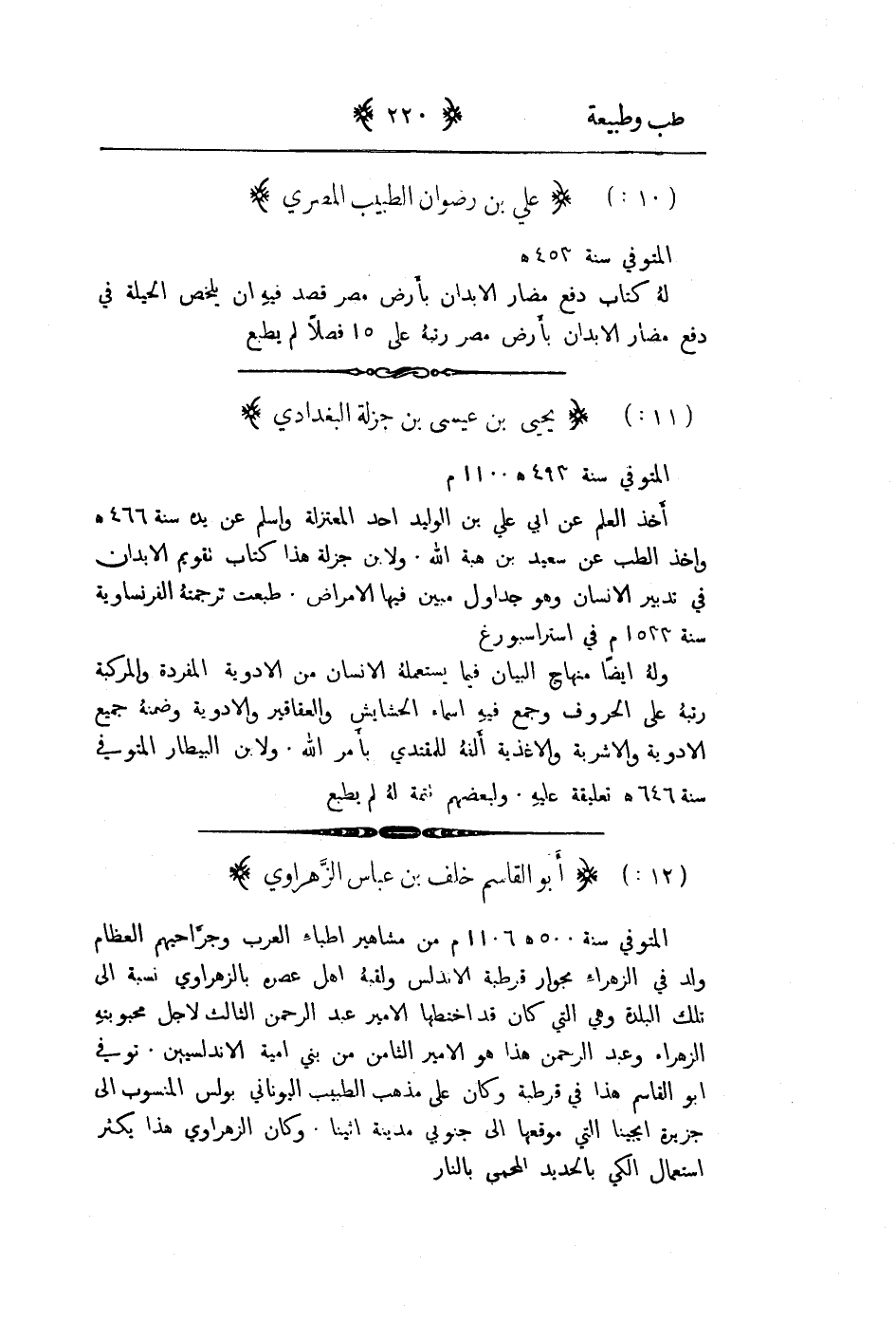 المتوفى سنة 453هـ له كتاب دفع مضار الابدان بارض مصر قصد فيه ال يلخص الحيلة في دفع مضار الابدان بارض مصر ورتبه على 15فصلاً لم يطبع