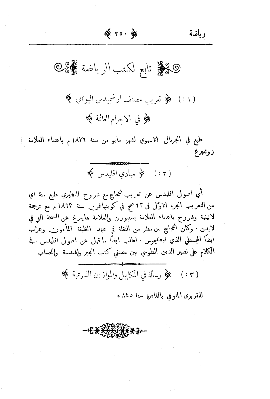 1 - تعريب مصنف ارخميدس اليوناني في الاجرام العائمة.