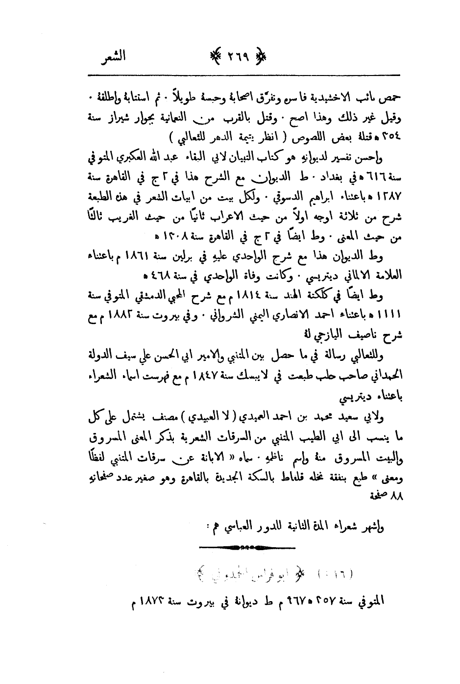 المتوفى سنة 357 هـ 967م وله ديوانه في بيروت سنة 1873م