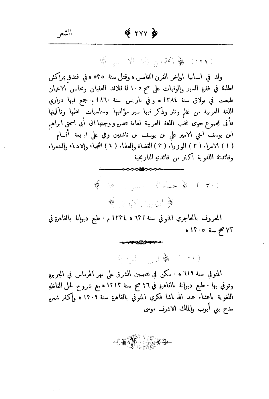 المعروف بالحاجري المتوفى سنة 632هـ 1234م طبع ديوانه بالقاهرة في 72صح سنة 1305هـ