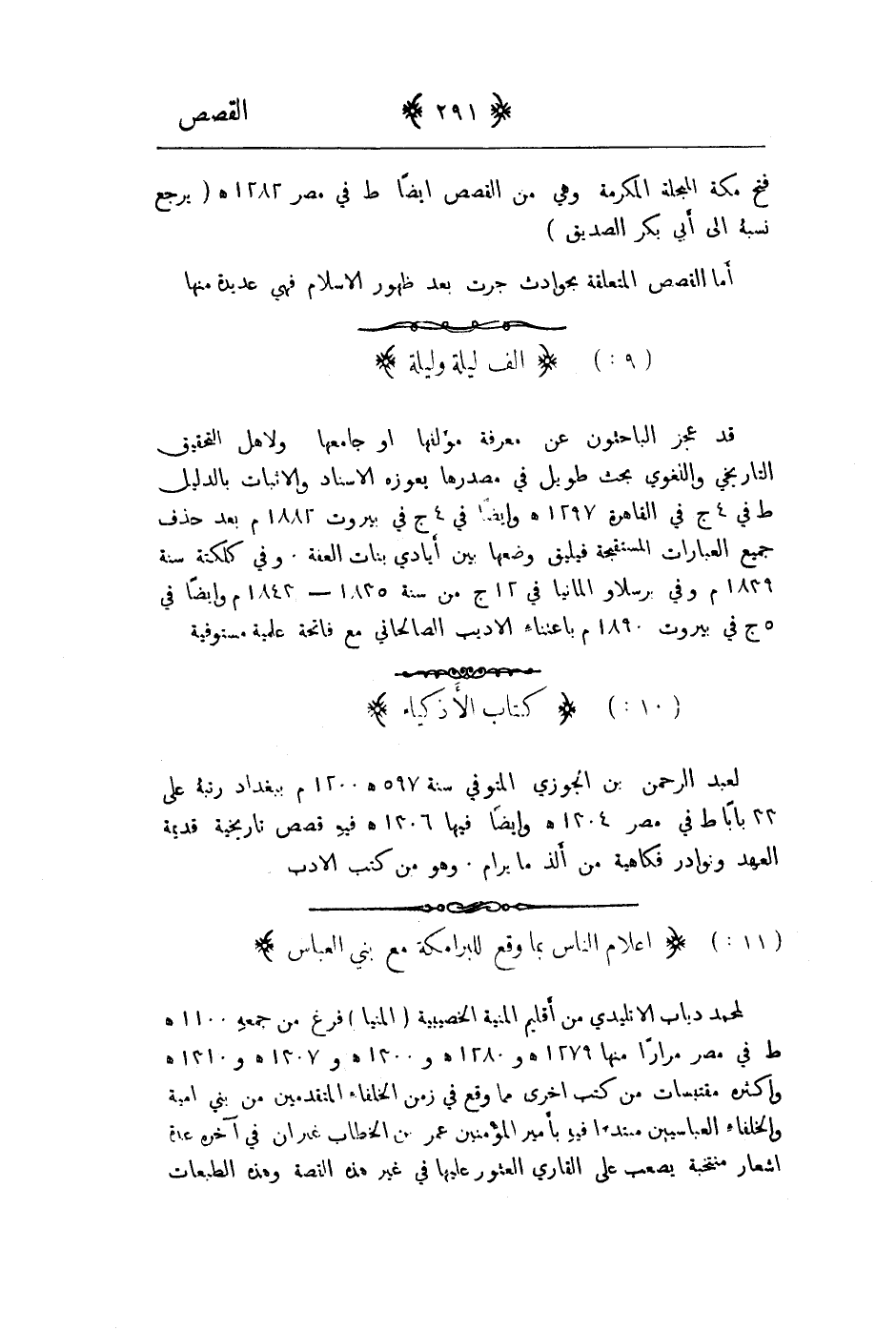 لعبد الرحمن بن الجوزي المتوفى سنة 597هـ 1200م ببغداد رتبه على 33 باباً طبع في مصر 1304هـ وأيضاً فيها 1306هـ فيه قصص تاريخية قديمة العهد ونوادر فكاهية ون الذ ما يرام. وهو من كتب الادب