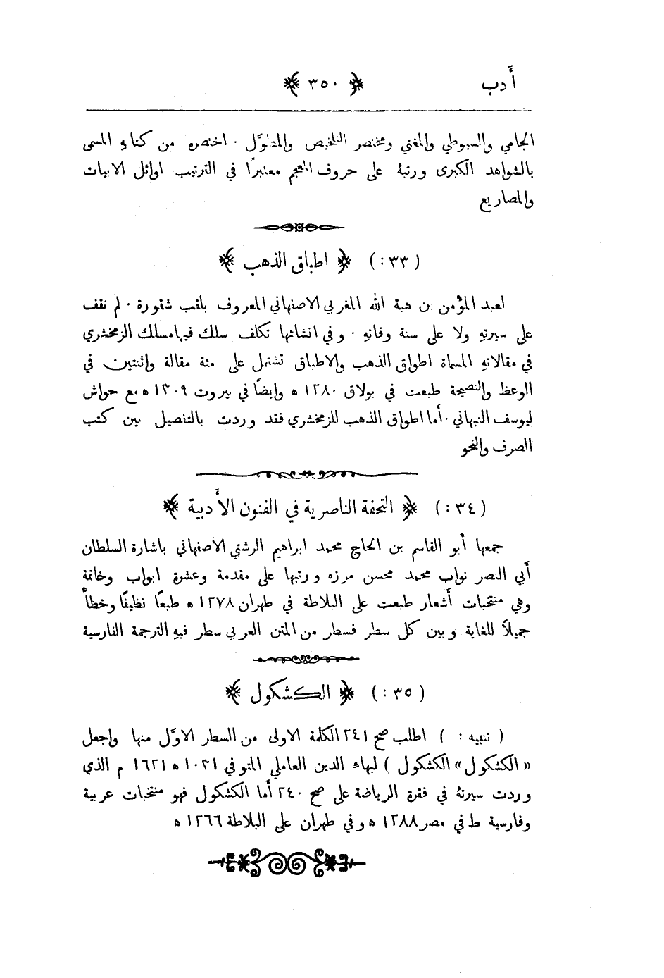 لبهاء الدين العاملي المتوفى 1031هـ 1621م الذي وردت سيرته في فقرة الرياضة اما الكشكول فهو منتخبات عربي وفارسية طبع في مصر 1288هـ وفي طهران على البلاطة 1266هـ