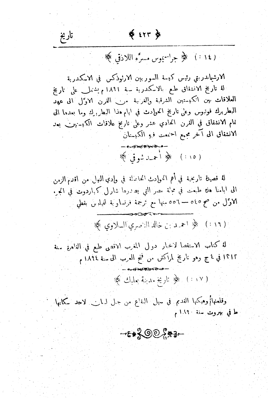 الارشيماندريني رئيس كنيسة السوربين الارثوذكس في الاسكندرية له تاريخ الانشقاق طبع بالاسكندرية سنة 1891م يشتمل على تاريخ العلاقات بين الكنيستين الشرقية والغربية من القرن الاول إلى عهد البطريك فوتيوس وعلى تاريخ الحوادث في ايام هذا البطريك وما بعدها إلى تمام الانشقاق في القرن الحادي عشر وعلى تاريخ علاقات الكنيستين بعد الانشقاق إلى آخر مجمع اجتمعت فيه الكنيستان