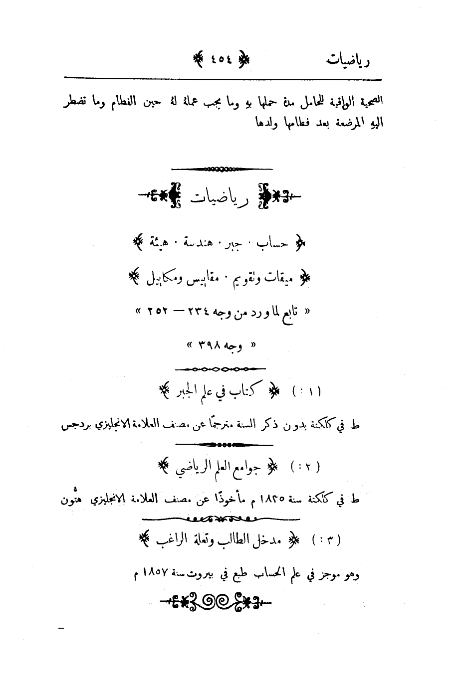 وهو موجز في علم الحساب طبع في بيروت سنة 1857م