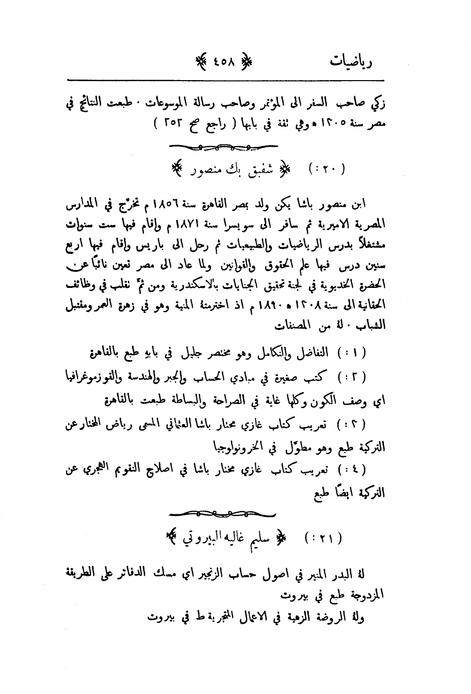 زكي صاحب السفر إلى المؤتمر وصاحب رسالة الموسوعات. طبعت النتائج في مصر سنة 1305هـ وهي ثقة في بابها