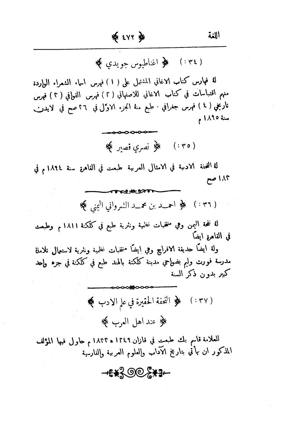 له التحفة الآدبية في الامثال العربية طبعت في القاهرة سنة 1894م في 183صح
