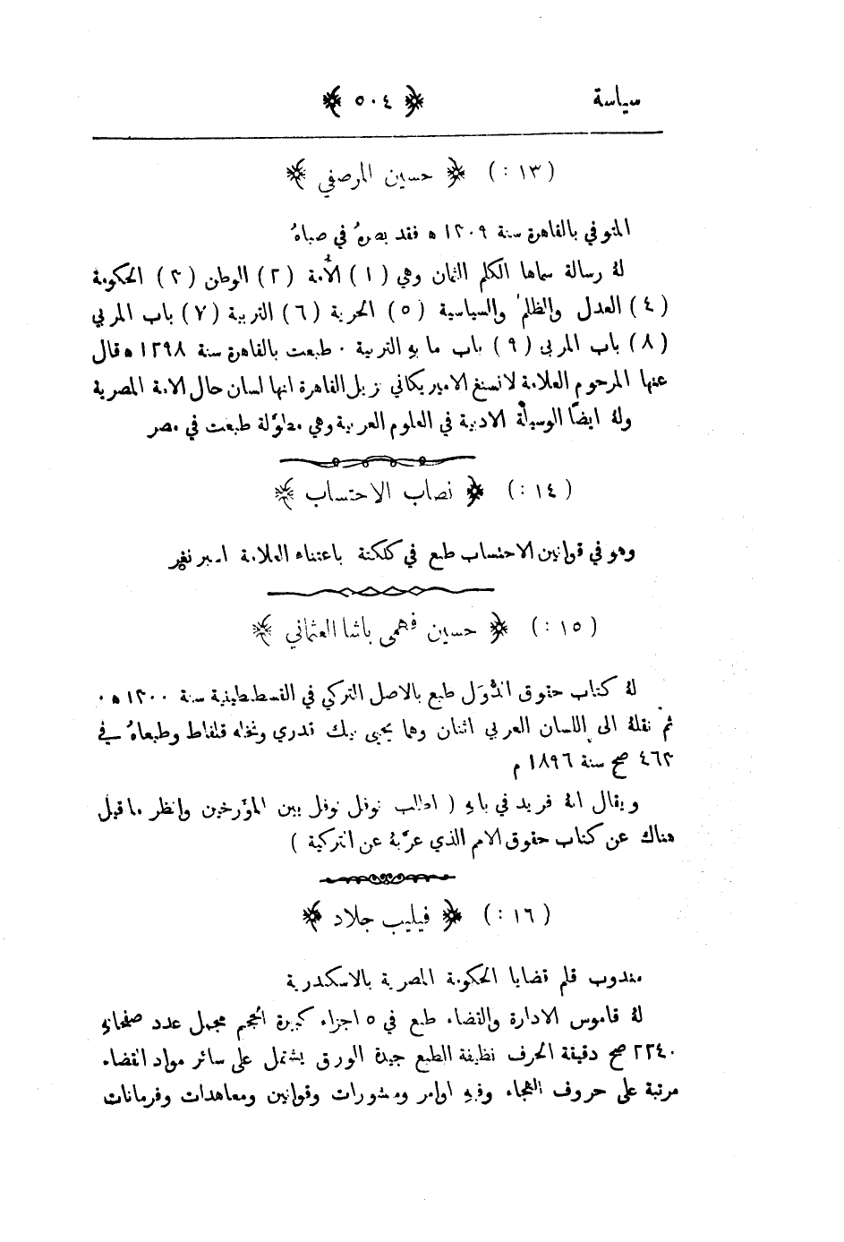 مندوب قلم قضايا الحكومة المصرية بالاسكندرية له قاموس الادارة والقضاء طبع في 5 اجزاء كبيرة الحجم مجمل عدد صفحاته 224صح دقيقة الحرف نظيفة الطبع جيدة الورق يشتمل على سائر مواد القضاء مرتبة على حروف الهجاء وفيه اوامر ومنشورات وقوانين ومعاهدات وفرمانات