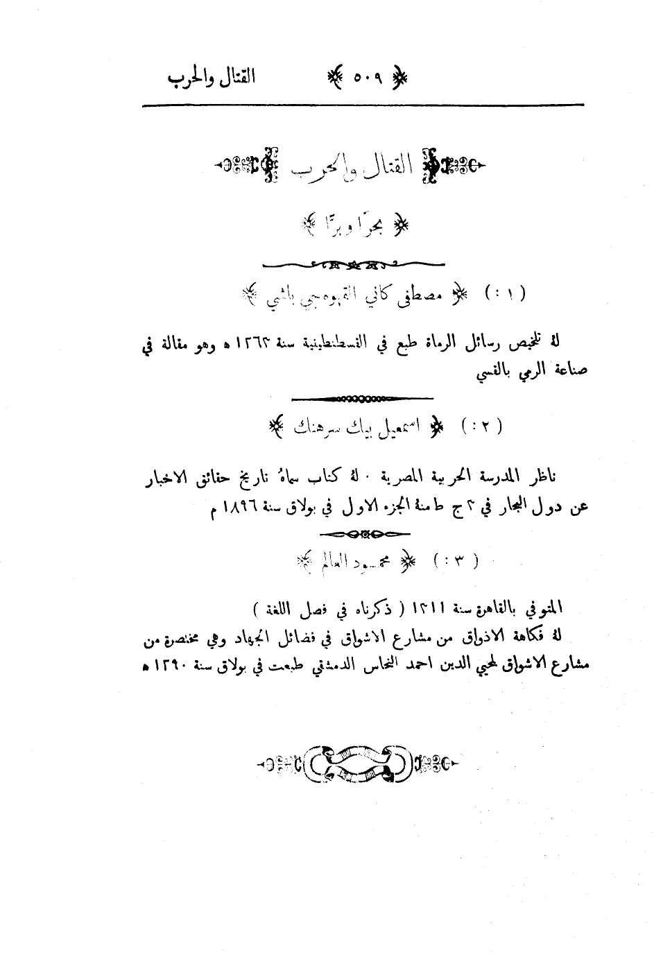 المتوفى بالقاهرة سنة 1311 ذكرناه في فصل اللغة. له فكاهة الاذواق في مشارع الاشواق في فضائل الجهاد وهي مختصرة من مشارع الاشواق لمحي الدين أحمد النحاس الدمشقي طبع في بولاق سنة 1290هـ