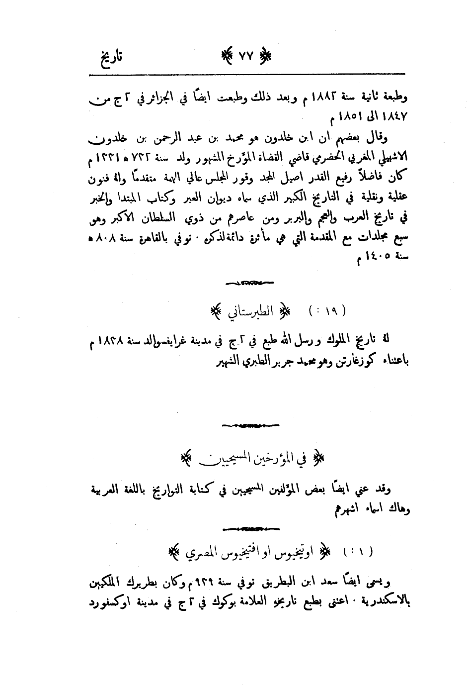 وقد عني ايضاً بعض المؤلفين المسيحيين في كتابة التواريخ باللغة العربية وهاك اسماء اشهرهم