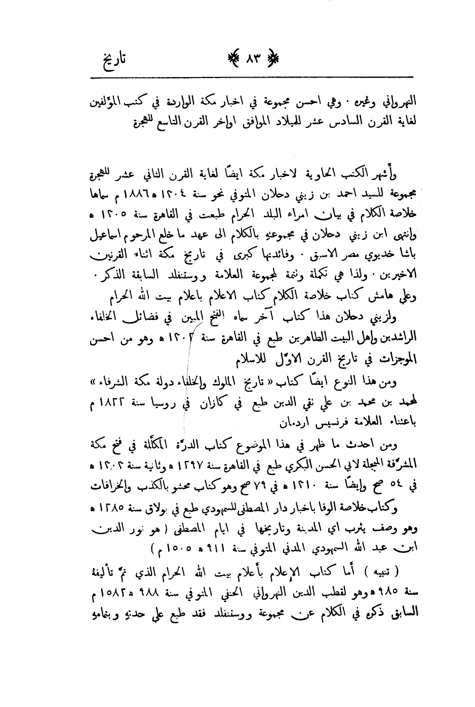 ومن هذا النوع ايضاً كتاب تاريخ الملوك والخلفاء دولة مكة الشرفاء لحمد بن محمد بن غلي تقي الدين طبع في كازان في روسيا سنة 1833م باعتناء العلامة فرنسيس اردمان.