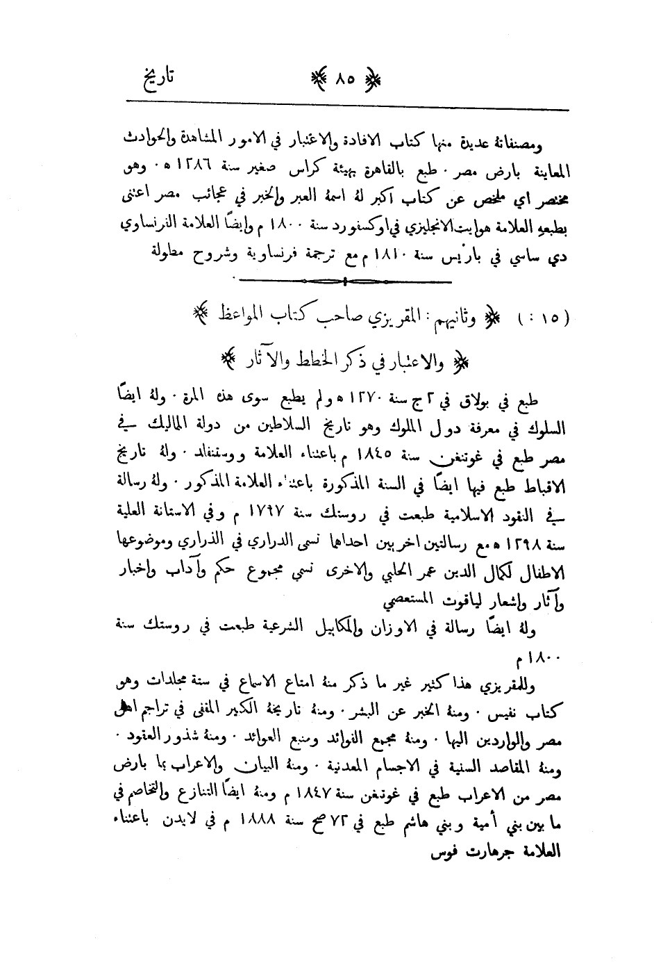 15 - وثانيهم المقريزي صاحب كتاب المواعظ والاعتبار في ذكر الخطط والاثر