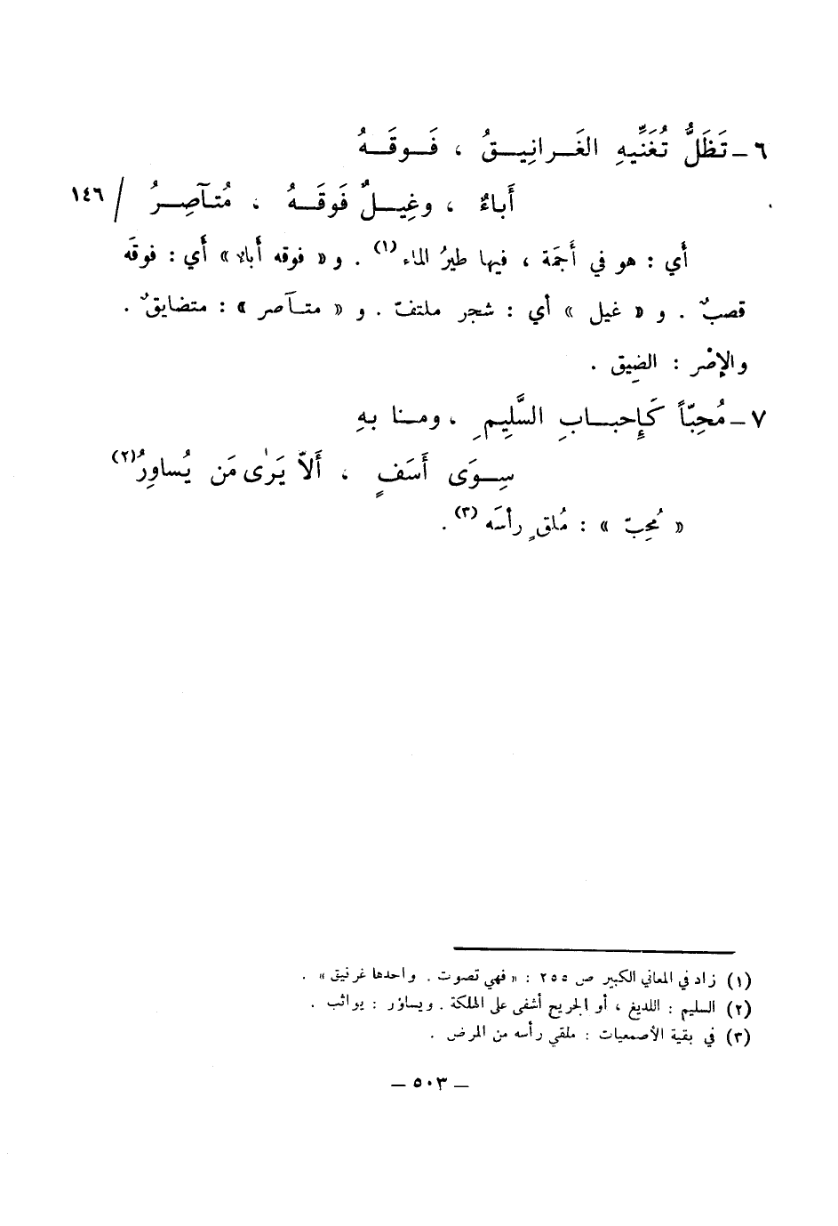 أي: هو في أجمة، فيها طير الماء. و"فوقه أباء" أي: فوقه قصب. و"غيل" أي: شجر ملتف. و"متآصر": متضايق. والإصر: الضيق.