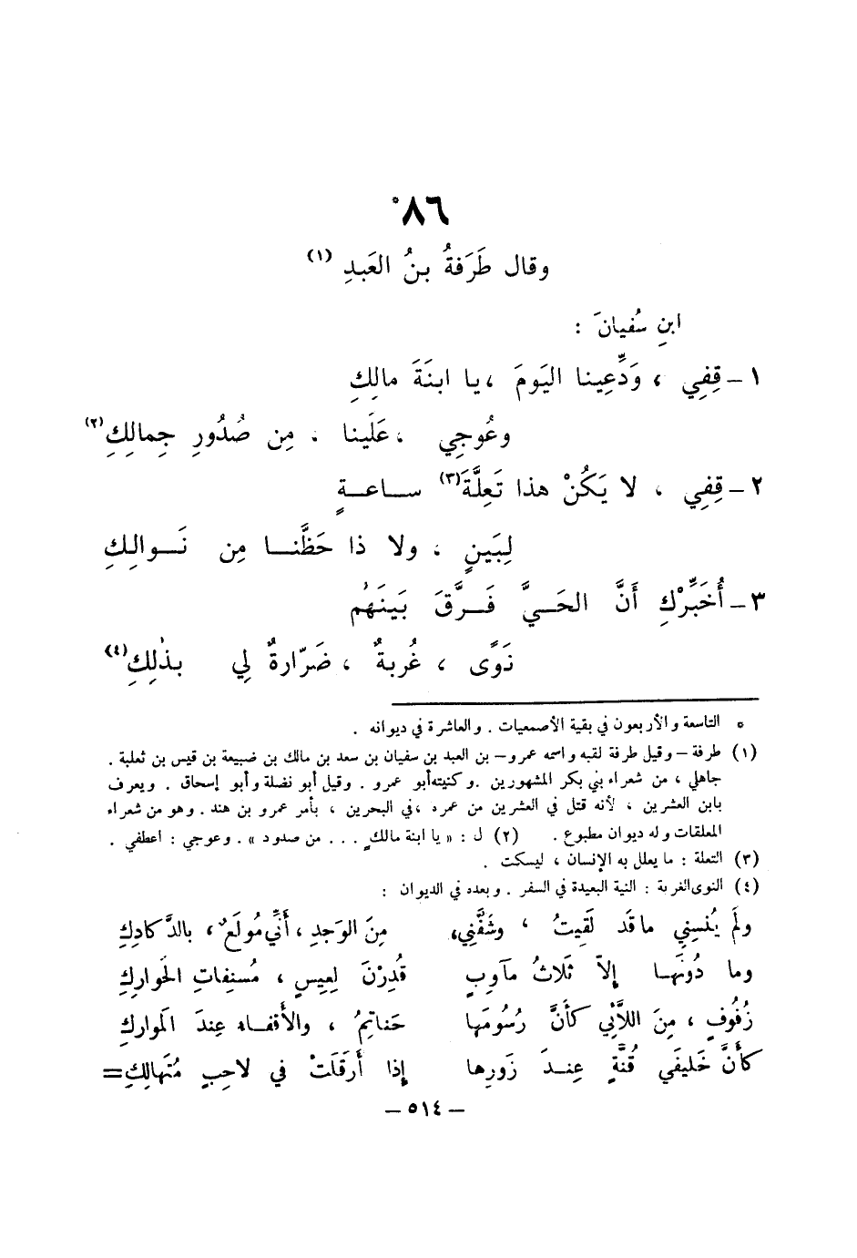 1 ... قفي، ودعينا اليوم، يا ابنه مالك