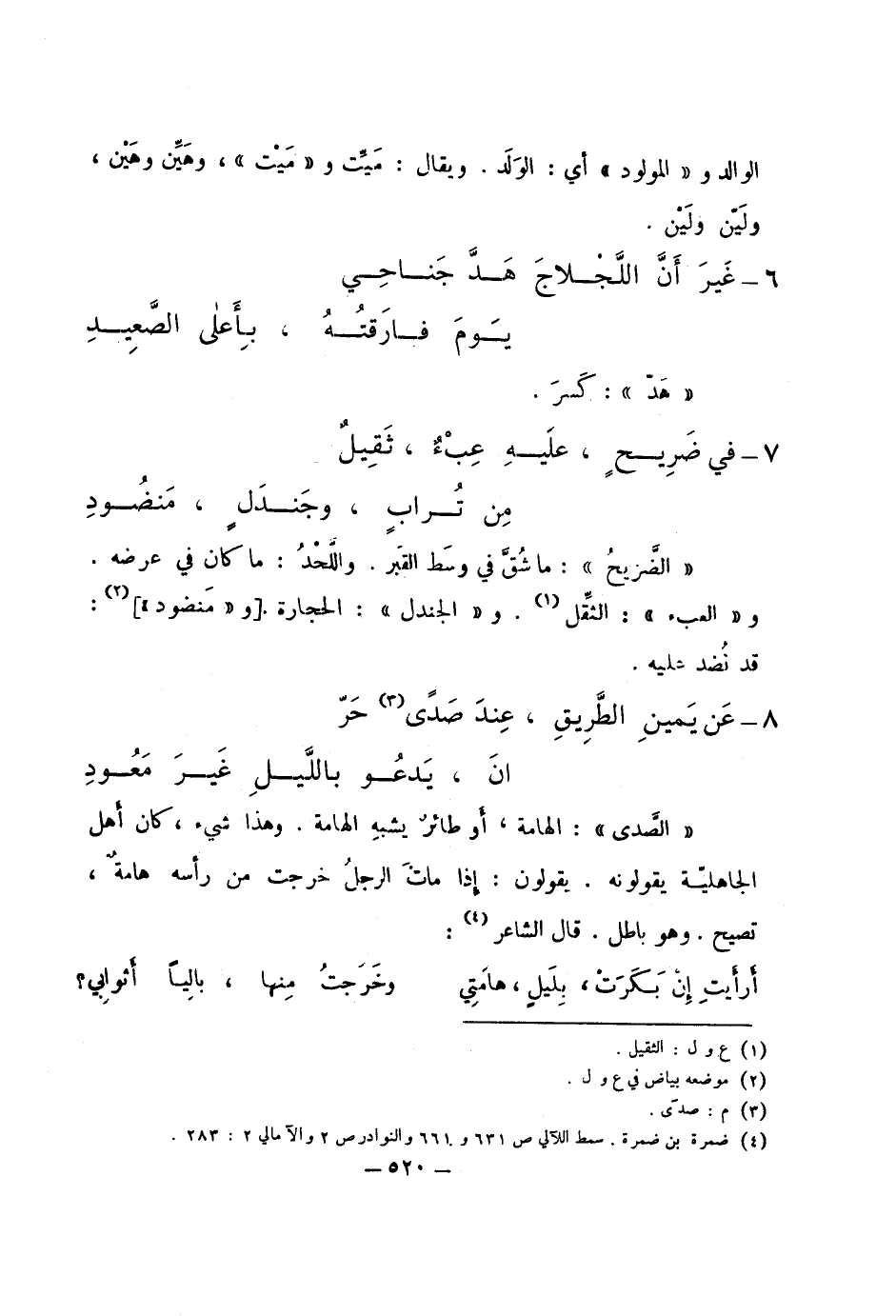 "الضريح": ما شق في وسط القبر. واللحد: ما كان في عرضه. و"العبء": الثقل. و"الجندل": الحجارة [و"منضود"] : قد نضد عليه.